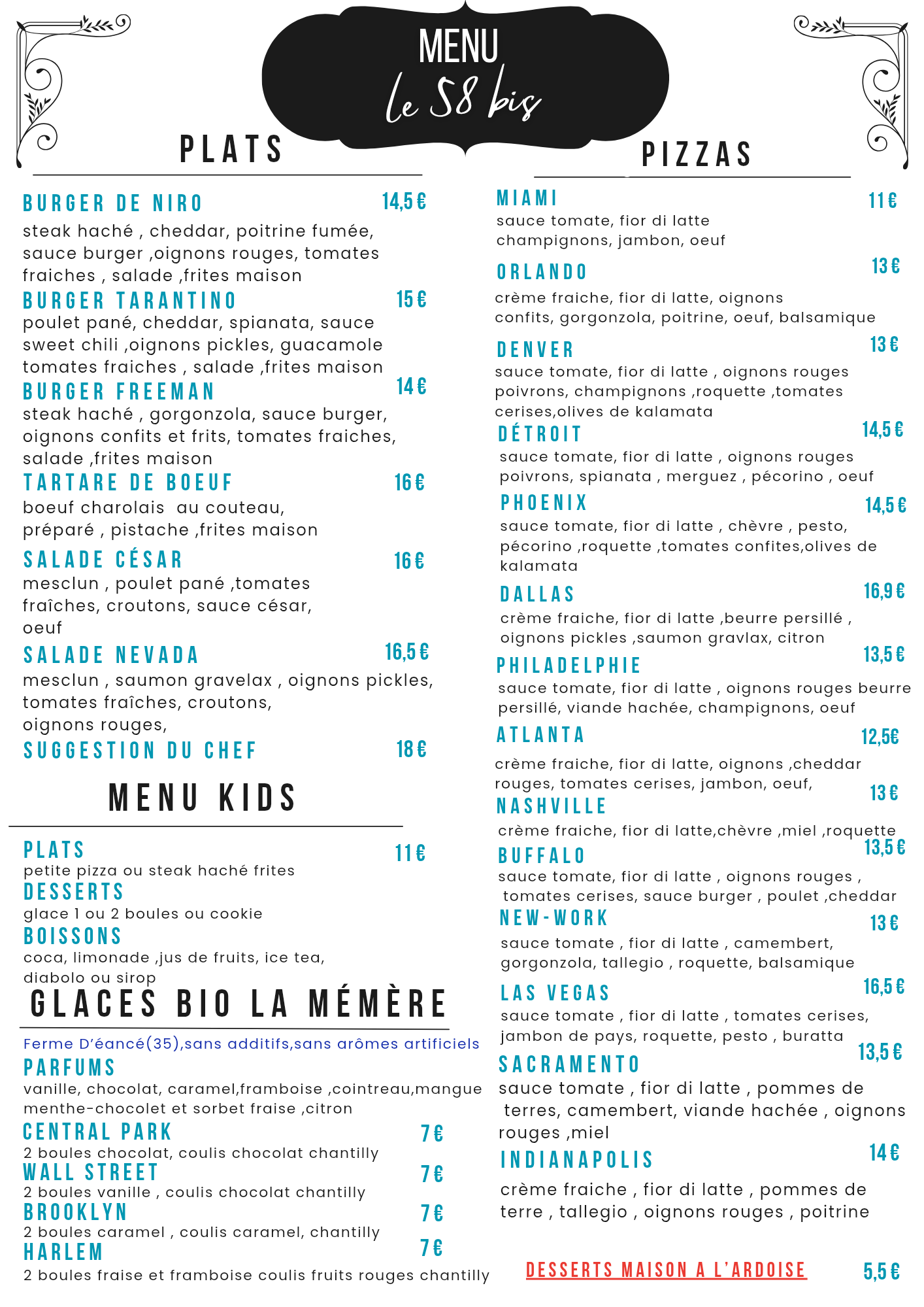 Bienvenue Le 58 bis , Chartres de Bretagne. Nous avons hâte de vous accueillir. Nous avons hâte de vous accueillir dans notre steakhouse. Préparez-vous à être captivé par notre délicieuse sélection de cuisine américaine, de cuisine française et de cuisine italienne. Une cuisine maison exceptionnelle et des produits locaux sont servis par notre personnel amical. Nos délicieux plats n'attendent que d'être dégustés par vous. Ici, vous pourrez également profiter de nos délicieux desserts sucrés. Complétez votre repas avec de savoureuses boissons. Une petite faim ? Venez nous rendre visite et savourez un déjeuner et un dîner savoureux dans un espace de détente. Nous avons de la bonne musique, en plus de notre excellent service.